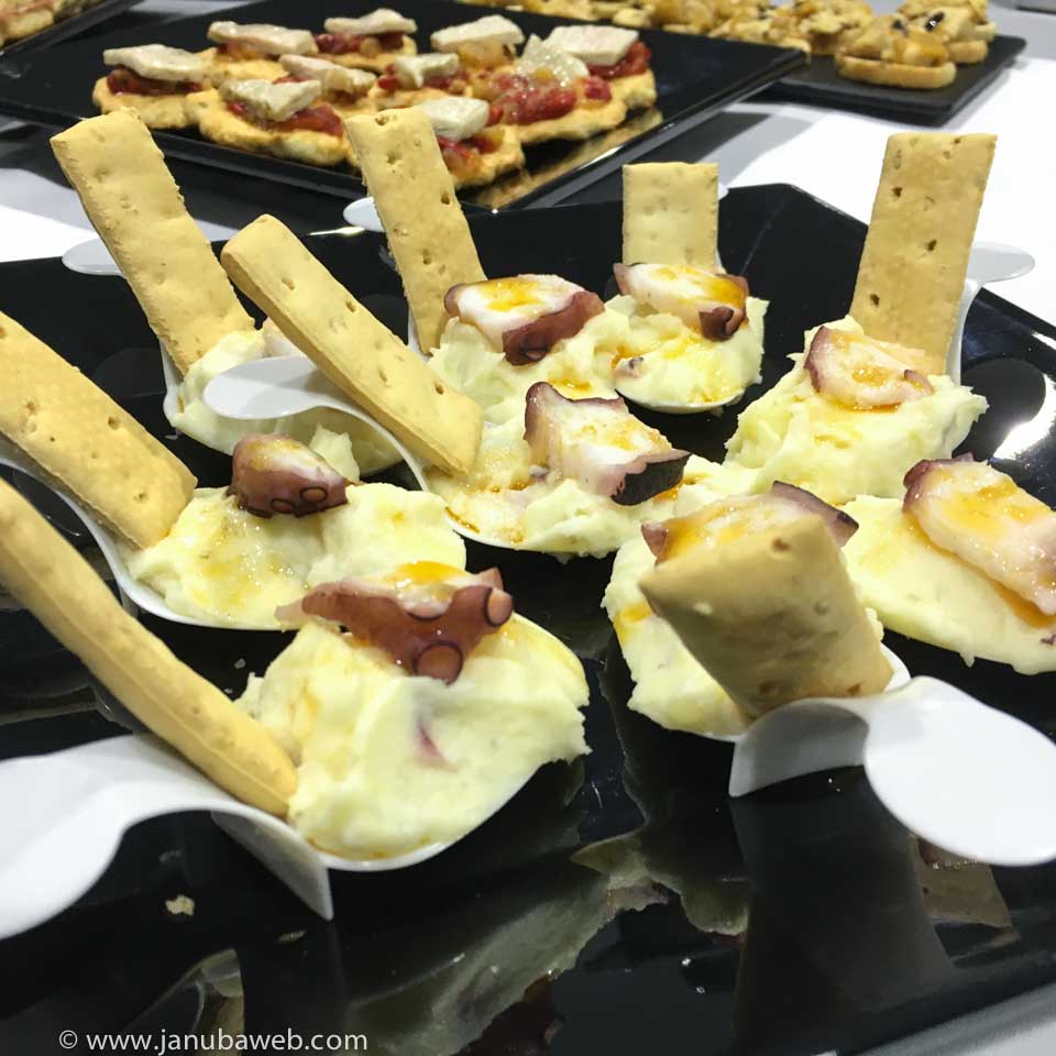 - Cucharitas de ensaladilla de pulpo con aceite de oliva al pimentón de la Vera