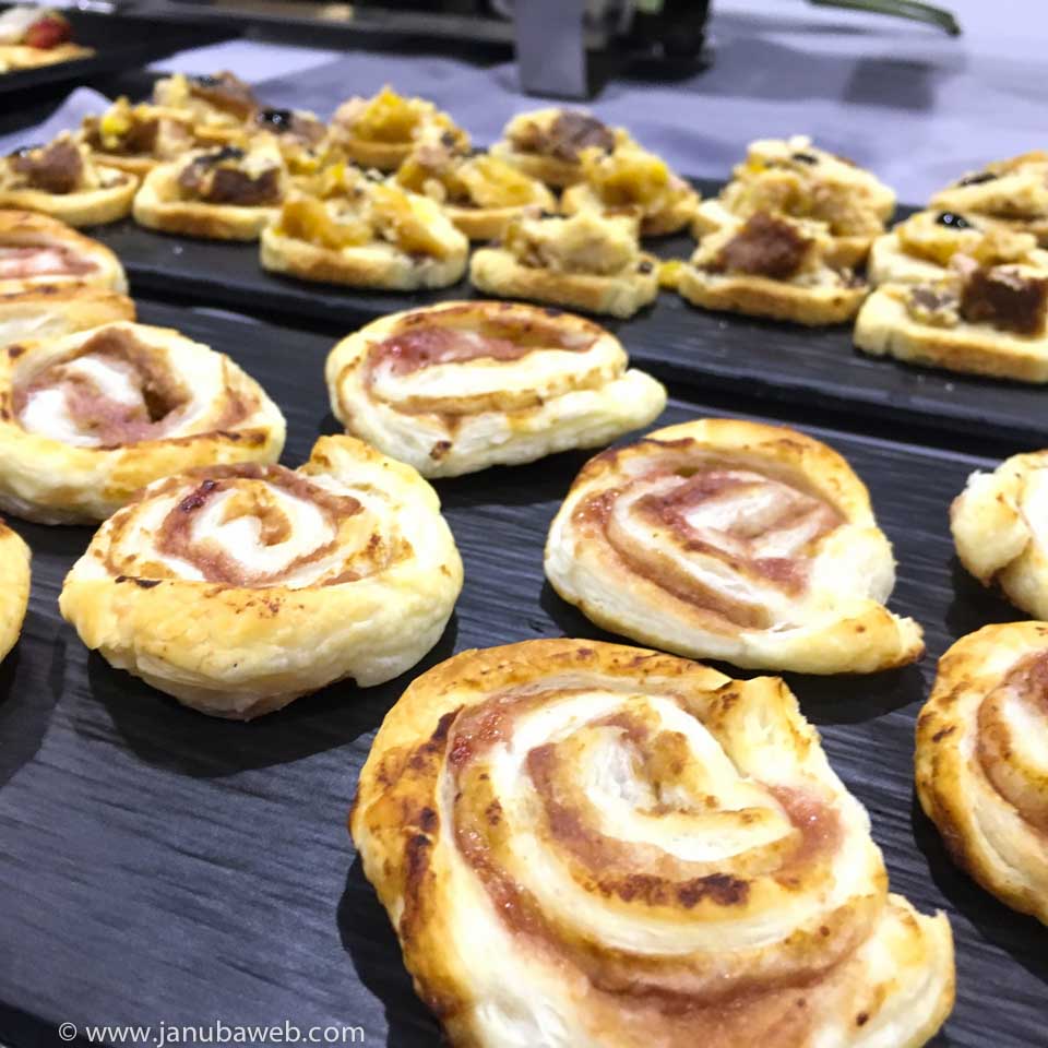 - Caracola de hojaldre con mousse de pato y confituras de frutas rojas