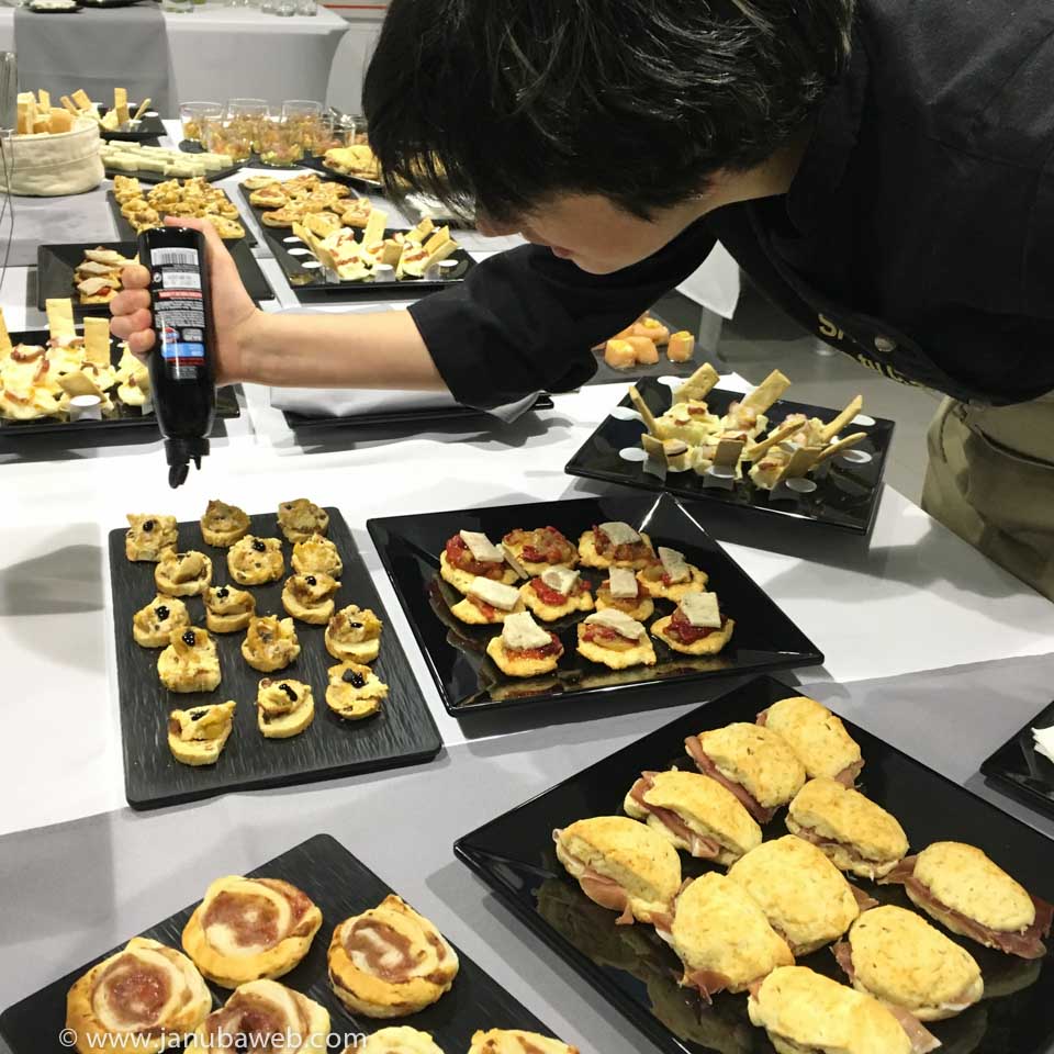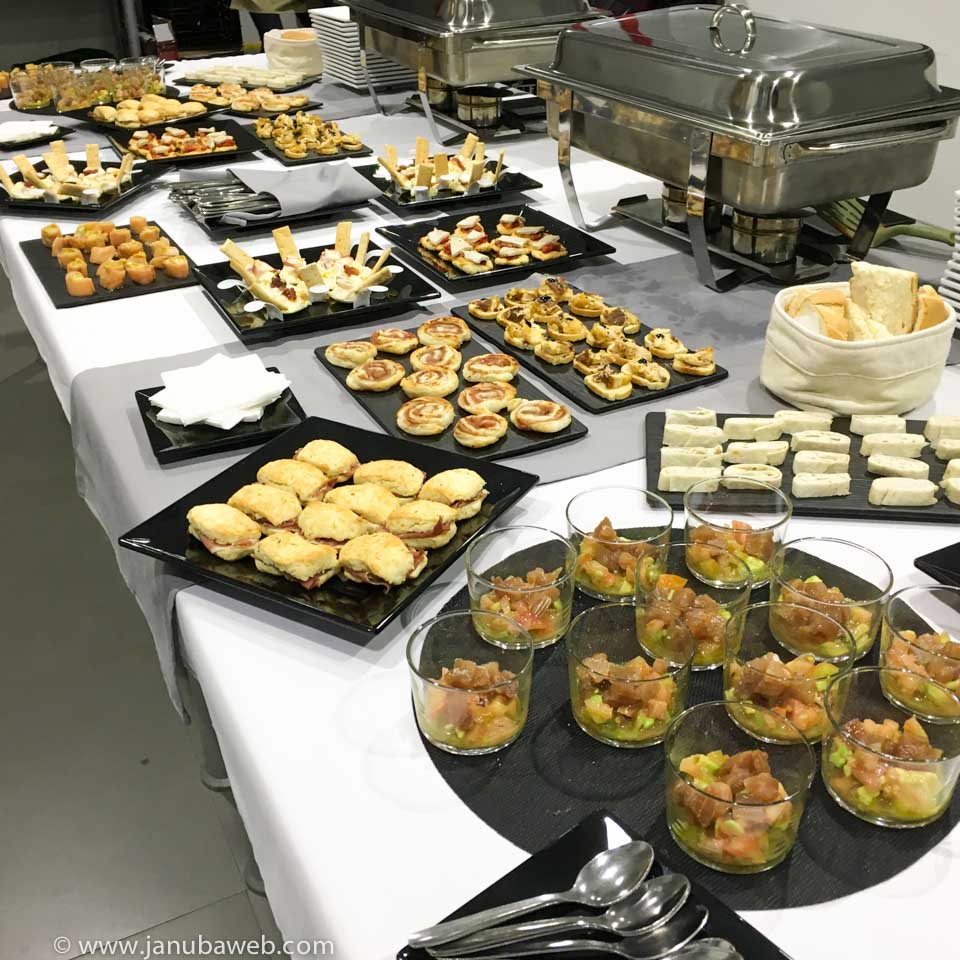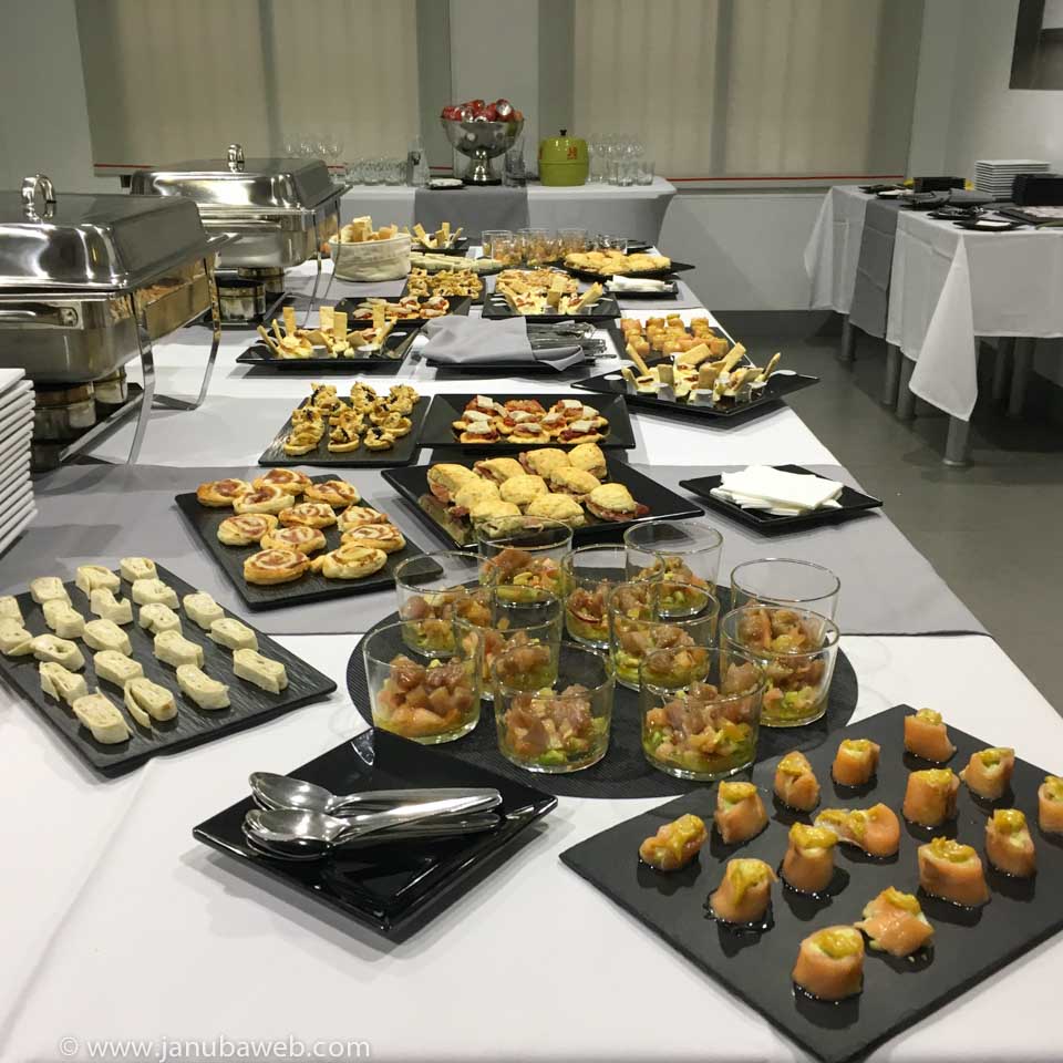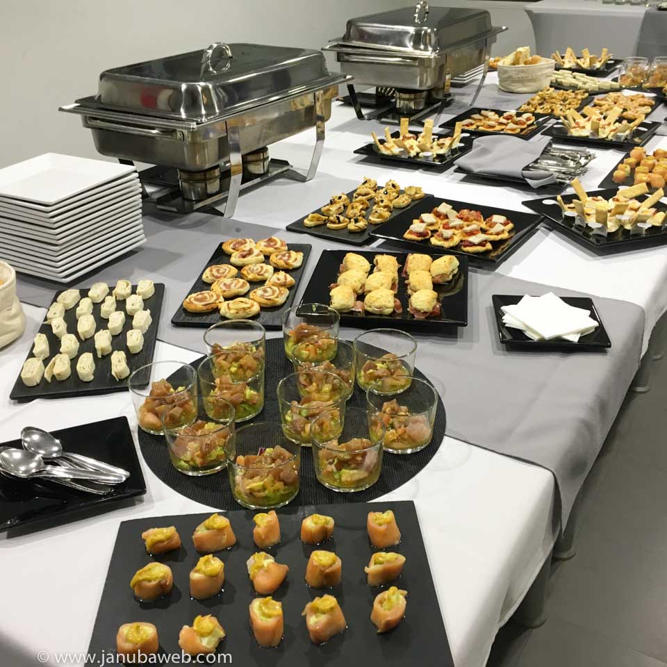 Desde SABORES en tu CASA hemos tenido la ocasión de poder ofrecerles en dos ocasiones, tanto en Ciudad Real como en Madrid, nuestro servicio de catering. En ambos casos, consistía en un servicio de cóctel atendido en el que los comensales iban degustando cada uno de los aperitivos que habíamos dispuesto sobre la mesa y, como plato principal y caliente, les servíamos cada uno de los dos platos principales que habían sido preparados.