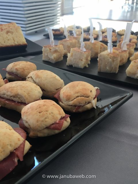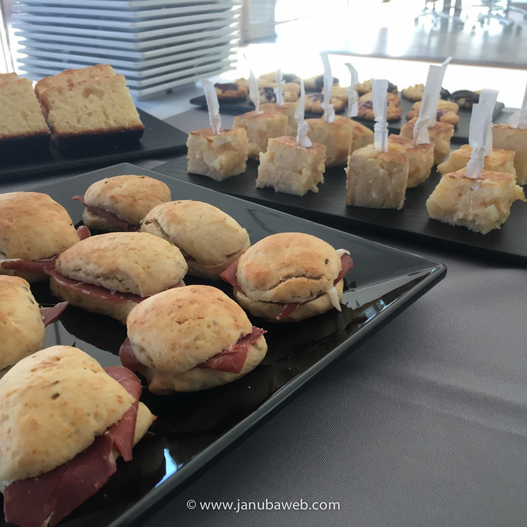 Un coffee-break no es otra cosa que un café a media mañana. al cual se el acompaña una serie de «aperitivos» para aguantar hasta la hora del almuerzo. Lo que ocurre es que decir «coffee-break» queda más «cool» que decir «cafe de media mañana». Dicha esta aclaración semántica 😝 os pasamos el detalle de lo que pusimos.