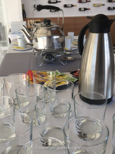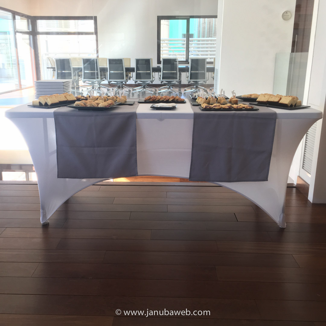 Se trataba de un grupo reducido de invitados que, en un momento de la reunión, iban a hacer un receso para poder tomar un café acompañado de algunos «dulces y salados». A partir de ahí comenzó nuestro trabajo. Este tipo de coffee-break ha sido bajo la modalidad de autoservicio, consistente en dejar todo montado y retirarnos para cuando lleguen los invitados. Este tipo de servicio no existe la atención personalizada al cliente en el momento del servicio sino, con antelación a este y, por supuesto, una vez que se haya terminado.